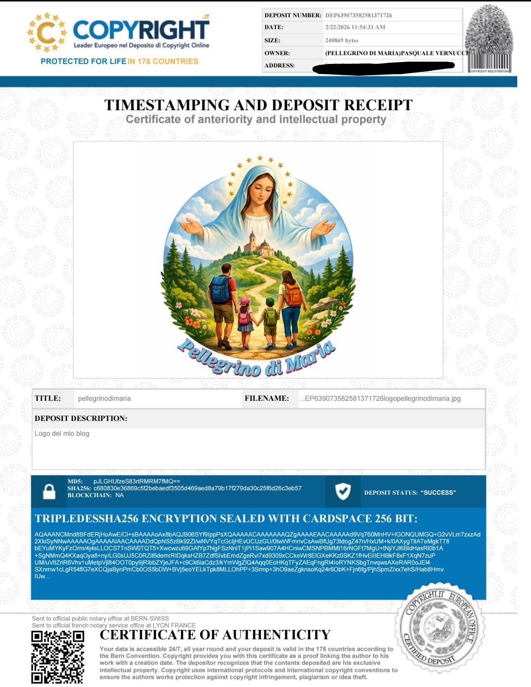 Oggi, con grande entusiasmo, abbiamo depositato il nostro logo: un simbolo voluto, pensato e pregato, che ci identificherà come pellegrini di Maria. Questo segno semplice e genuino racchiude l’essenza della nostra famiglia e il desiderio di camminare ogni giorno sotto il suo sguardo materno. Il logo sarà per sempre il sigillo visibile della nostra missione: vivere con cuore umile, fede concreta e amore fraterno, lasciandoci guidare da Maria nel servizio agli altri e nel custodire la bellezza della vita familiare.